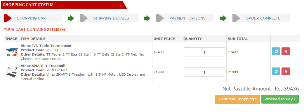 At this point you can update your Shopping Cart by removing products from your Shopping Cart and updating product quantity. When you are ready to submit your order click on "Proceed to Pay" button.